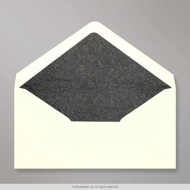 Página principal / Envelopes forrados / Envelopes forrados com papel fancy / Envelopes forrados com papel preto fancy / 110x220 mm (DL) envelope marfim forrado + papel fancy preto