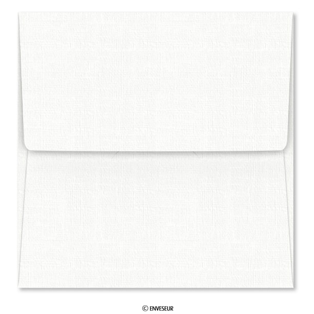Código de produto: AS15081 Sem Aba (no interior): 175 mm Aba (no interior): 175 mm Cor: Branco Acabamento: Textura de linho Formato: Quadrado Fecho: Ranhura para a aba Material Principal: Cartão Gramagem: 170 g/m2 Impressão interior: Não Costuras: Medidas internas Janela: Liso |