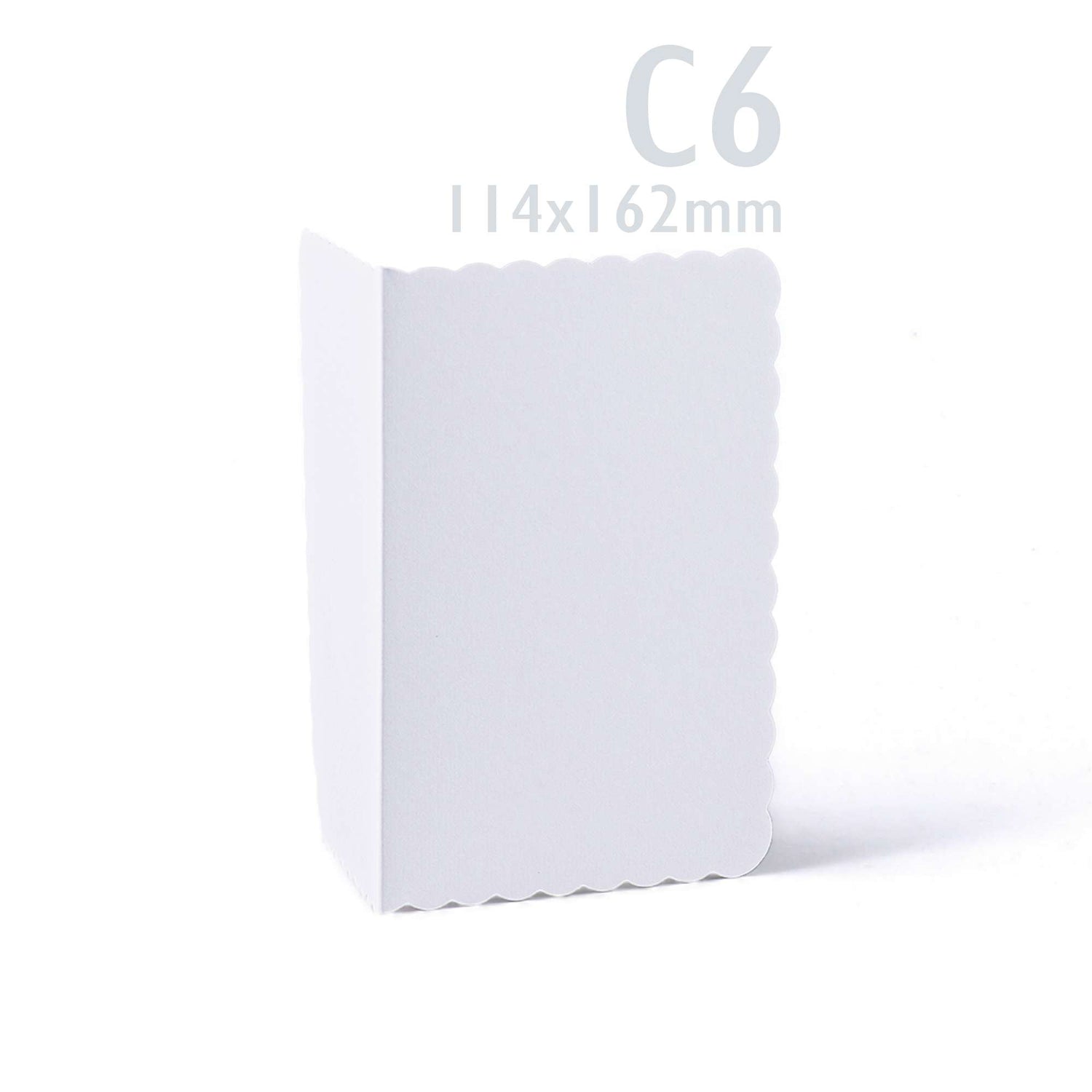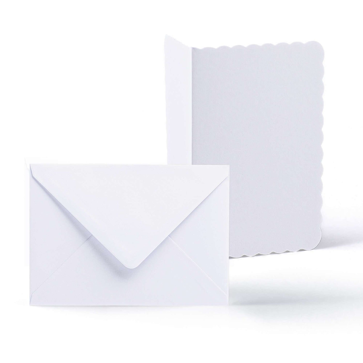 Conjunto elegante de cartões brancos com bordas recortadas (300 g/m²) e envelopes correspondentes (100 g/m²).